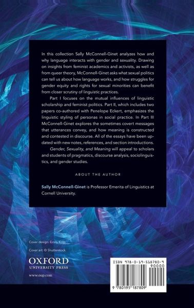 This volume offers a representative selection of Sally McConnell-Ginet's publications on language, gender and sexuality, which circle around the following themes: language users are actively engaged in making meanings, both as speakers and listeners; languages and socio-political institutions constrain, but do not determine, communicative possibilities; attention to language deepens understanding of gender and sexuality, including connections to ethnicity, class, race, and other dimensions of social identity and inequality.