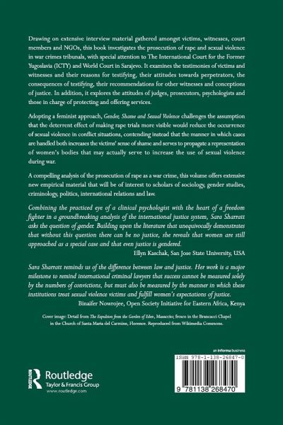 Drawing on extensive interview material gathered amongst victims, witnesses, judges and NGOs, this book investigates the prosecution of rape and sexual violence in war crimes tribunals, with special attention to The International Court for the Former Yugoslavia (ICTY) and World Court in Sarajevo. It examines the testimonies of victims and witnesses and their reasons for testifying, their attitudes towards perpetrators, the consequences of testifying, their recommendations for other witnesses and conceptions of justice. In addition, it explores the attitudes of judges, prosecutors, psychologists and those in charge of protecting and offering services. Adopting a feminist approach, 'Gender, Shame and Sexual Violence' challenges the assumption that the deterrent effect of making rape trials more visible would reduce the occurrence of sexual violence in conflict situations, contending instead that the manner in which cases are handled both increases the victims' sense of shame and serves to propagate a representation of women's bodies that may actually serve to increase the use of sexual violence during war. A compelling analysis of the prosecution of rape as a war crime, this volume offers extensive new empirical material that will be of interest to scholars of sociology, gender studies, criminology, politics, international relations and law.