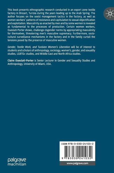 Gender, Textile Work, and Tunisian Women's Liberation will be of interest to students andscholars ofanthropology, sociology, women's, gender, and sexuality studies, LGBTQ+ studies,and Middle East and North Africa studies.