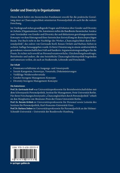 Dieses Buch liefert ein theoretisches Fundament sowohl für die praktische Gestaltung einer an Chancengleichheit orientierten Personalpolitik als auch für die weitere Forschung.Im Vordergrund stehen grundlegende Fragen und Debatten über Gender und Diversity in (Arbeits-)Organisationen. Die Autorinnen stellen die Bandbreite theoretischer Ansätze zum Verständnis von Gender und Diversity dar und diskutieren gestaltungsorientierte Konzepte vor dem Hintergrund ihrer historischen Entwicklung im deutschsprachigen Raum. Das Buch steht in der Nachfolge des Werkes "Chancengleichheit durch Personalpolitik", das zuletzt von Gertraude Krell, Renate Ortlieb und Barbara Sieben in sechster Auflage herausgegeben wurde. Es bietet Orientierung in einem unübersichtlich gewordenen wissenschaftlichen Feld und fundierte Argumentationsgrundlagen für die Praxis. Es richtet sich sowohl an Personalverantwortliche, Gleichstellungsbeauftragte, Betriebsräte und andere, die eine betriebliche Chancengleichheitspolitik begründen und umsetzen wollen, als auch an Studierende, Lehrende und Forschende.