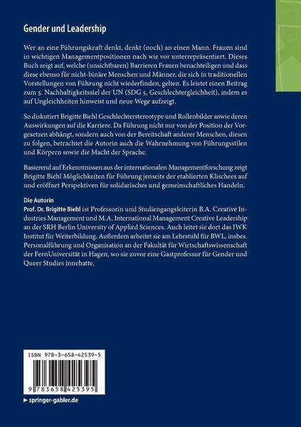 So diskutiert Brigitte Biehl Geschlechterstereotype und Rollenbilder sowie deren Auswirkungen auf die Karriere. Da Führung nicht nur von der Position der Vorgesetzen abhängt, sondern auch von der Bereitschaft anderer Menschen, diesen zu folgen, betrachtet die Autorin auch die Wahrnehmung von Führungsstilen und Körpern sowie die Macht der Sprache.