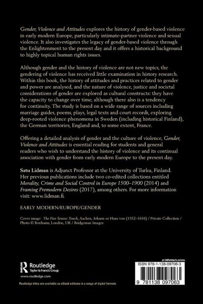 Gender, Violence and Attitudes explores the history of gender-based violence in early modern Europe, particularly intimate-partner violence and sexual violence. It also investigates the legacy of gender-based violence through the Enlightenment to the present day and offers a historical background to highly topical human rights issues. Although the individual subjects of gender and the history of violence are not new topics, the gendering of violence has received little examination. Within this book, the history of attitudes and practices related to gender and power are analysed, and the nature of violence, justice and societal considerations of gender are explored as cultural constructs: they have the capacity to change over time, although there also is a tendency for continuity. The study is based on a wide range of sources including marriage guides, poems, plays, legal texts and court records exploring deep-rooted violence phenomena in Sweden (including historical Finland), the German territories, England and, to some extent, France. Offering a detailed analysis of gender and the culture of violence, Gender, Violence and Attitudes is essential reading for students and general readers who wish to understand the history of violence and its continual association with gender from early modern Europe to the present day.
