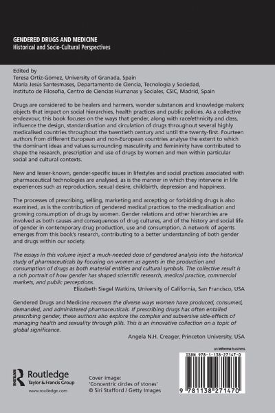 Drugs are considered to be healers and harmers, wonder substances and knowledge makers; objects that impact on social hierarchies, health practices and public policies. As a collective endeavour, this book focuses on the ways that gender, along with race/ethnicity and class, influence the design, standardisation and circulation of drugs throughout several highly medicalised countries throughout the twentieth century and until the twenty-first. Fourteen authors from different European and non-European countries analyse the extent to which the dominant ideas and values surrounding masculinity and femininity have contributed to shape the research, prescription and use of drugs by women and men within particular social and cultural contexts. New and lesser-known, gender-specific issues in lifestyles and social practices associated with pharmaceutical technologies are analysed, as is the manner in which they intervene in life experiences such as reproduction, sexual desire, childbirth, depression and happiness. The processes of prescribing, selling, marketing and accepting or forbidding drugs is also examined, as is the contribution of gendered medical practices to the medicalisation and growing consumption of drugs by women. Gender relations and other hierarchies are involved as both causes and consequences of drug cultures, and of the history and social life of gender in contemporary drug production, use and consumption. A network of agents emerges from this book's research, contributing to a better understanding of both gender and drugs within our society.