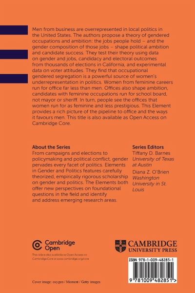 Men from business are overrepresented in local politics in the United States. The authors propose a theory of gendered occupations and ambition: the jobs people holdâ and the gender composition of those jobs-shape political ambition and candidate success. This title is also available as Open Access on Cambridge Core.