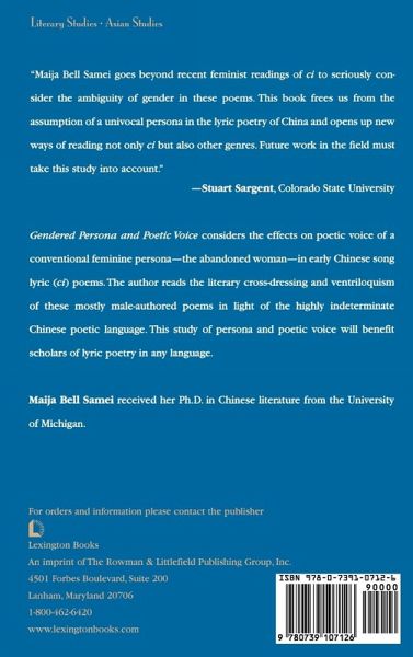 Gendered Persona and Poetic Voice considers the effects on poetic voice of a conventional feminine persona, the abandoned woman, in early Chinese song lyric (ci) poems. The author reads the literary cross-dressing and ventriloquism of these mostly male-authored poems in light of the highly indeterminate Chinese poetic language, resulting in a consideration of persona and poetic voice of interest to scholars of lyric poetry in any language.