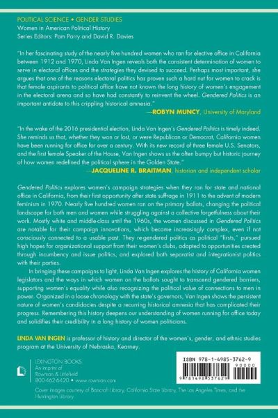 This book explores the campaign history of California's women legislators and the increasingly complex strategies they used in efforts to transcend gender barriers when running for office from 1912 to 1970. Nearly 500 women ran on the primary ballots, re-gendering the political landscape while struggling against a recurring historical amnesia.