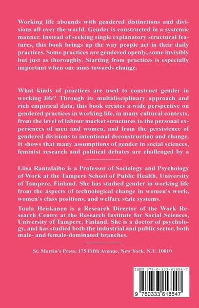 Gendered distinctions and differences in working life are produced by often hidden practices. What are they like? How do they work? The book creates, through its multidisciplinary approach and rich empirical data, a wide perspective on gendered practices in working life, from the level of labour market structures to the personal experiences of women and men. Some taken-for-granted assumptions of gender in social sciences and feminist research are challenged by a view through the 'Nordic window'.