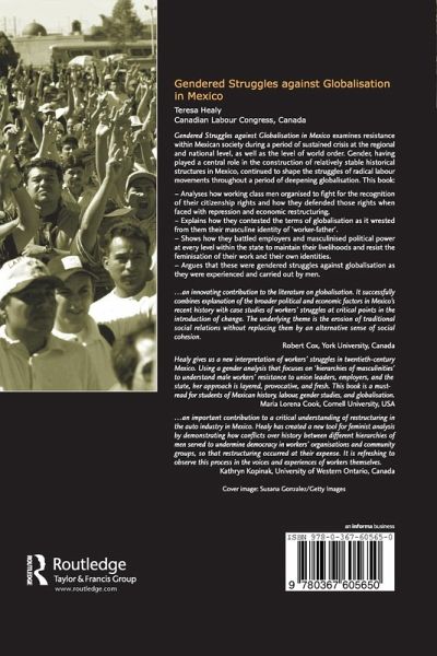 Teresa Healy here examines resistance within Mexican society during a period of sustained crisis at the regional and national level, as well as at the level of world order. She analyzes how working class men organized to fight for the recognition of their citizenship rights, how they defended those rights when faced with repression and economic restructuring and how they contested the terms of globalization as it wrested from them their masculine identity of 'worker-fathers'. Healy also demonstrates how these men battled employers and masculinized political power at every level within the state to maintain their livelihoods and resist the feminization of their work and their own identities. These were gendered struggles against globalizations as they were experienced and carried out by men. The volume uncovers the limits and possibilities of working class men and women in transforming the conditions in which they live and work, and highlights the diversity and rich political history of social movements in Mexico.
