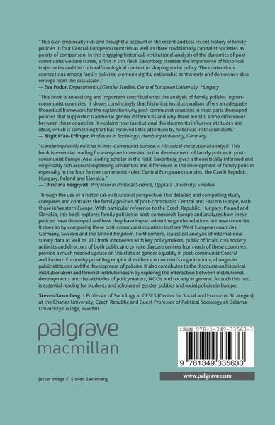 Through the use of a historical-institutional perspective and with particular reference to the Czech Republic, Hungary, Poland and Slovakia; this study explores the state of family policies in Post-Communist Europe. It analyzes how these policies have developed and examines their impact on gender relations for the countries mentioned.