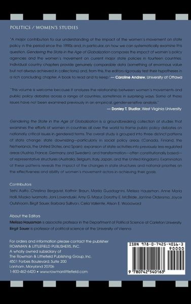 Gendering the State is a ground-breaking collection of studies that examines the efforts of women in countries all over the world to frame public policy debates on nationally critical issues in gendered terms. This is the latest volume in the Research Network on Gender and the State (RNGS) collaborative studies. Using the RNGS model of women's movement and women's policy actor strategies to influence public policy debates and state response, the book looks at data gathered from ten European countries (including Finland and Sweden), plus Japan, Australia, Canada, and the United States from the 1990s to today. The overall study is grouped into three distinct patterns of state change: state downsizing-particularly in social policy areas (Canada, Finland, the Netherlands, the United States, and Spain); expansion of state activities into previously less-regulated areas (Austria, France, Germany, and Sweden); and transformation-often constitutionally based-of representative structures (Australia, Belgium, Italy, Japan, and the United Kingdom). Examination of these patterns reveals the impact of the changes in state structures and national priorities on the effectiveness and ability of women's movement actors in achieving their goals.