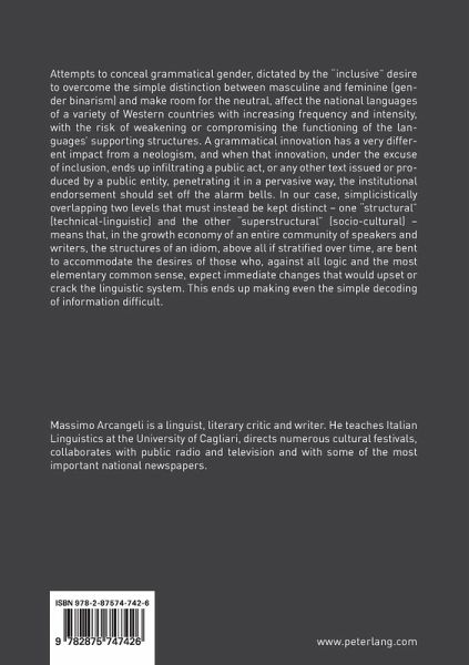 Attempts to conceal grammatical gender, dictated by the "inclusive" desire to overcome the simple distinction between masculine and feminine (gender binarism) and make room for the neutral, affect the national languagesof a variety of Western countries with increasing frequency and intensity, with the risk of weakening or compromising the functioning of the languages' supporting structures. A grammatical innovation has a very different impact from a neologism, and when that innovation, under the excuse of inclusion, ends up infiltrating a public act, or any other text issued or produced by a public entity, penetrating it in a pervasive way, the institutional endorsement should set off the alarm bells. In our case, simplicistically overlapping two levels that must instead be kept distinct - one "structural" (technical-linguistic) and the other "superstructural" (socio-cultural) - means that, in the growth economy of an entire community of speakers and writers, the structures of an idiom, above all if stratified over time, are bent to accommodate the desires of those who, against all logic and the most elementary common sense, expect immediate changes that would upset or crack the linguistic system. This ends up making even the simple decodingof information difficult.