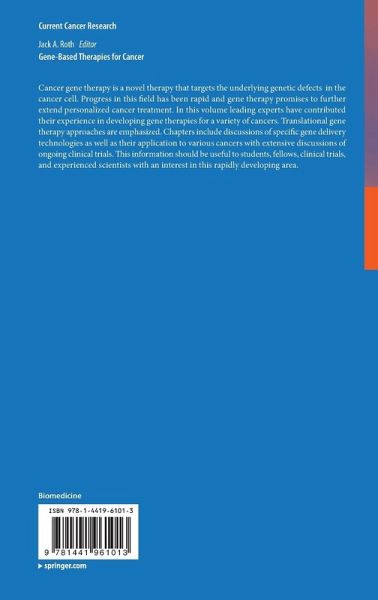 Cancer gene therapy is a novel therapy that targets the underlying genetic defects in the cancer cell. Progress in this field has been rapid and gene therapy promises to further extend personalized cancer treatment. In this volume leading experts have contributed their experience in developing gene therapies for a variety of cancers. Translational gene therapy approaches are emphasized. Chapters include discussions of specific gene delivery technologies as well as their application to various cancers with extensive discussions of ongoing clinical trials. This information should be useful to both students, fellows, and experienced scientists with an interest in this rapidly developing area.