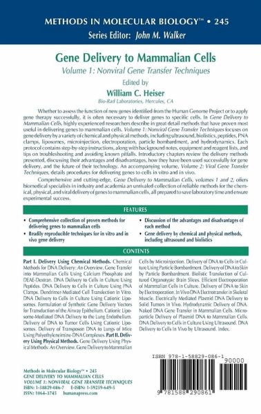 "This unrivaled collection of proven, reliable methods for the chemical, physical, and viral delivery of genes into mammalian cells, presented in great detail by experienced researchers, should be a valuable reference work for novices in this filed and experienced researchers alike." - Medical Oncology