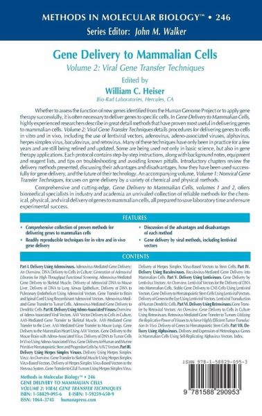 "This unrivaled collection of proven, reliable methods for the chemical, physical, and viral delivery of genes into mammalian cells, presented in great detail by experienced researchers, should be a valuable reference work for novices in this filed and experienced researchers alike." - Medical Oncology