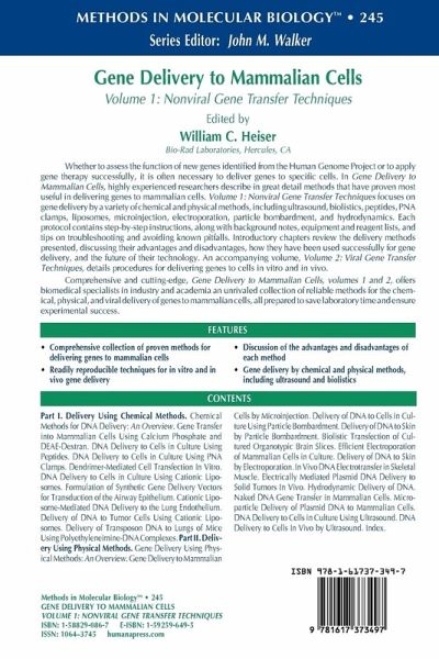 "This unrivaled collection of proven, reliable methods for the chemical, physical, and viral delivery of genes into mammalian cells, presented in great detail by experienced researchers, should be a valuable reference work for novices in this filed and experienced researchers alike." - Medical Oncology
