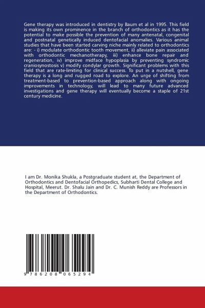 Gene therapy was introduced in dentistry by Baum et al in 1995. This field is making its own prominence in the branch of orthodontics as it has the potential to make possible the prevention of many antenatal, congenital and postnatal genetically induced dentofacial anomalies. Various animal studies that have been started carving niche mainly related to orthodontics are: - i) modulate orthodontic tooth movement, ii) alleviate pain associated with orthodontic mechanotherapy, iii) enhance bone repair and regeneration, iv) improve midface hypoplasia by preventing syndromic craniosynostosis v) modify condylar growth. Significant problems with this field that are rate-limiting for clinical success. To put in a nutshell, gene therapy is a long and rugged road to explore. An urge of shifting from treatment-based to prevention-based approach along with ongoing improvements in technology, will lead to many future advanced investigations and gene therapy will eventually become a staple of 21st century medicine.