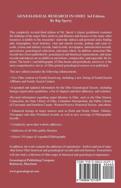 Completely revised and updated third edition examines holdings of the major Ohio archives, libraries, and other genealogy repositories and research resources. Includes website addresses, maps, bibliography, and index.