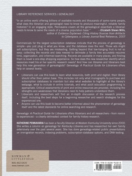 Genealogy: A Practical Guide for Librarians covers the big picture of genealogy and evidence-based research, plus the variety and availability of many record types, but also provides practical advice for both researchers and librarians.