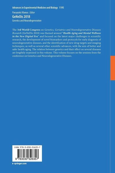 The 3rd World Congress on Genetics, Geriatrics, and Neurodegenerative Disease Research (GeNeDis 2018), focuses on recent advances in genetics, geriatrics, and neurodegeneration, ranging from basic science to clinical and pharmaceutical developments. It also provides an international forum for the latest scientific discoveries, medical practices, and care initiatives. Advanced information technologies are discussed, including the basic research, implementation of medico-social policies, and the European and global issues in the funding of long-term care for elderly people.