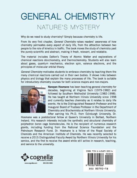 Why do we need to study chemistry? Simply because chemistry is life.From its very first chapter, General Chemistry raises readers’ awareness of how chemistry permeates every aspect of daily life, from the attraction between two people to the role of kinetics in traffic. The book moves the study of chemistry past the purely scientific and abstract, making it fresh, relevant, and relatable. The material includes Dalton’s Theory of Atomic Matter and explorations of chemical reactions stoichiometry, and thermochemistry. Students will also learn about gases, quantum mechanics, electron spin, valence electrons, and the principles of molecular orbital theory. General Chemistry motivates students to embrace chemistry by teaching them the many chemical reactions carried out in their own bodies. It shows links between physics and biology that explain the many processes of life. The book is suitable for introductory chemistry courses for both science majors and non-majors.
