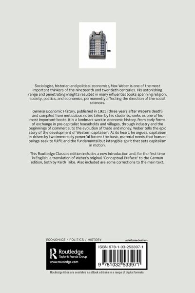 General Economic History, published in 1923 (three years after Weber's death) and compiled from meticulous notes taken by his students, ranks as one of his most important books. It is a landmark work in economic history. From early forms of exchange in pre-capitalist households and villages, through industry and the beginnings of commerce, to the evolution of trade and money, Weber tells the epic story of the development of Western capitalism. At its heart, he argues, capitalism is driven by two immensely powerful forces: the basic, material needs that human beings seek to fulfil; and the fundamental but intangible spirit that sets capitalism in motion.