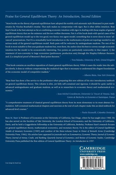 'Most books on the theory of general equilibrium have adopted the terribly arid axiomatic style illustrated in pure mathematics by Nicolas Bourbaki's treatise. That style makes no compromise with rigor. But it often defies intuition. Ross Starr's book is the best attempt so far at combining economic intuition with rigor in dealing with those staples of general equilibrium theory that are the existence and the two welfare theorems. Part A ... deals with special cases of the general equilibrium model up to the two-good, two-factor, two-agent model, something that is never done in more 'advanced' presentations. Part B is a remarkably lucid introduction to the mathematics of point-set topology needed in any serious study of the general equilibrium model. Both parts will be welcomed by undergraduate students.' Yves Balasko, University of York