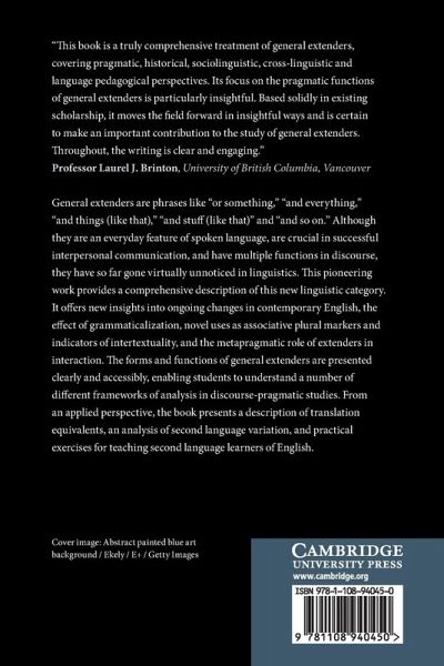 General extenders are everyday features of spoken language that have gone virtually unnoticed in linguistics, but are crucial to successful communication. This pioneering work provides a comprehensive analysis of this new linguistic category, offering a valuable resource for researchers and students in linguistics, and language educators.