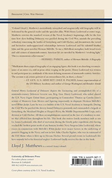 Based on a treasure trove of newly discovered information, General Henry Lockwood of Delaware: Shipmate of Melville, Co-builder of the Naval Academy, Civil War Commander offers the first comparative study of Lockwood’s seminal influence on the emergence of the U.S. Naval Academy. Colonel Matthews shines new light on the Civil War commander, with a description of Lockwood’s duties during the Seminole Indian War, an analysis of Melville’s depiction of Professor Lockwood, a critical discussion of Alfred Thayer Mahan’s depiction of Lockwood, and a tactical reconstruction of Commodore Jones’s seizure of Monterey. Matthews inverts Lockwood's unjust historical reputation by offering a comprehensive defense of Lockwood’s actions at Cold Harbor and an unblinking exposé of the reprehensible conduct of corps commander Governor Warren in relieving him.