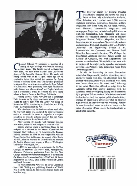 The two-year search for General Douglas MacArthur's speeches and reports was truly a labor of love. My Administrative Assistant, Ellen Schaefer, and I culled over 1,000 sources including memories, biographies, histories, military magazines such as the Army and Air Force Journals, unit histories, commercial magazines and newspapers. Magazines included such publications as National Geographic, Life Magazine and many esoteric less circulated literature such as Military Magazine, Retired Officers Magazine, Air Force Magazine and so many others. We received guidance and assistance from such sources as the U.S. Military Academy, the Engineering School at Ft. Leavenworth, the Command and General Staff School at Leavenworth, the Army War College, the MacArthur Archives Director James Zobel, the Library of Congress, the War Department; the sources seemed endless. We do believe we were able to capture all the major public speeches and reports covering MacArthur's truly productive years from 1908 through 1964. Contains more than 125 speeches/reports. It will be interesting to note, MacArthur established his personality early in his military career and never veered from this. His admonition from his Mother when MacArthur was a student at West Point was, never cheat, never lie, never tattle". Adhering to this edict MacArthur offered to resign from the Academy rather than answer questions from the Academy panel investigating hazing and harassment by a group of fellow students. MacArthur continued to develop his hard line against political and military intrigue by resolving to always do what he believed right even if he knew no one was watching. Further he was determined never to refuse to carryout the order of a senior officer - never be insubordinate to constituted authority."