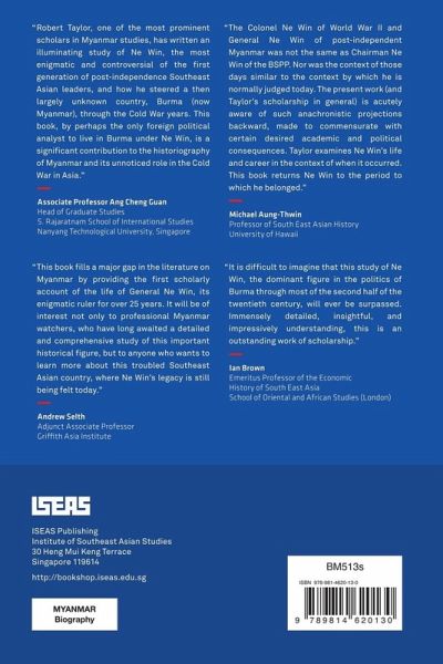 "Robert Taylor, one of the most prominent scholars in Myanmar studies, has written an illuminating study of Ne Win, the most enigmatic and controversial of the first generation of post-independence Southeast Asian leaders, and how he steered a then largely unknown country, Burma (now Myanmar), through the Cold War years. This book, by perhaps the only foreign political analyst to live in Burma under Ne Win, is a significant contribution to the historiography of Myanmar and its unnoticed role in the Cold War in Asia." -- Associate Professor Ang Cheng Guan, Head of Graduate Studies, S. Rajaratnam School of International Studies, Nanyang Technological University, Singapore.