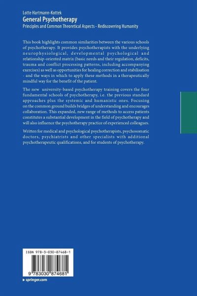 This book highlights common similarities between the various schools of psychotherapy. It provides psychotherapists with the underlying neurophysiological, developmental psychological and relationship-oriented matrix (basic needs and their regulation, deficits, trauma and conflict processing patterns, including accompanying exercises) as well as opportunities for healing correction and stabilisation - and the ways in which to apply these methods in a therapeutically mindful way for the benefit of the patient.