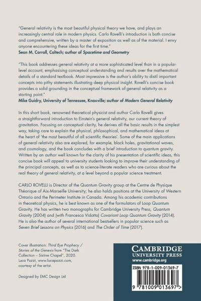 Renowned physicist and author Carlo Rovelli gives a straightforward introduction to General Relativity, our current theory of gravitation. Focusing on conceptual clarity, he derives all the basic results in the simplest way, explaining the central physical, philosophical and mathematical ideas for readers going beyond a popular science level.