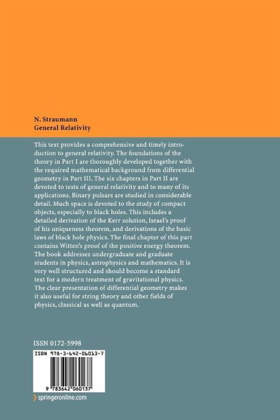 "This text provides a comprehensive and timely introduction to general relativity. ... The book addresses undergraduate and graduate students in physics, astrophysics and mathematics. It is very well structured and should become a standard text for a modern treatment of gravitational physics. The clear presentation of differential geometry makes it also useful for strong theory and other fields of physics, classical as well as quantum." (ETDE Energy Database Energiedatenbank, November, 2004)
