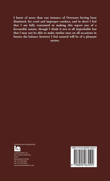 I know of more than one instance of Overseers having been dismissed, for cruel and improper conduct, and in short I feel that I am fully warranted in making this report one of a favourable nature, though I think it not at all improbable but that I may not be able to make similar ones on all occasions in future; the balance however I feel assured will be of a pleasant nature. Id. P. 140.