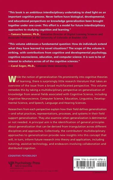 This volume takes a multi-disciplinary perspective on generalization of knowledge from several fields associated with Cognitive Science, including Cognitive Neuroscience, Computer Science, Education, Linguistics, Developmental Science, and Speech, Language and Hearing Sciences. The aim is to derive general principles from triangulation across different disciplines and approaches.