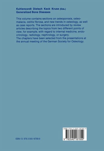 I. Osteoporosis.- Clinical Aspects of Osteoporosis.- Radiological Detection of Osteoporosis.- Remarks on the Diagnosis of Osteoporosis employing Iliac Crest Biopsies. Quantitative-morphometric Studies with the Aid of an Automatic Image Analysis System.- Idiopathic Juvenile Osteoporosis - Light- and Electronmicroscopic Findings in the Iliac Crest.- Clinical Aspects of Measurements of Dual Photon Absorption in Healthy Persons and Patients suffering from Bone Mass Reduction.- Magnetic Resonance Iamging of Bone Marrow: Effect of Osteoporosis and Age on Signal Intensity.- Investigations on Age-dependent Bone Loss and on Bone Loss in Morbus Cushing - A Comparison.- Combined Use of Vitamin D3, Vitamin D3 Metabolites and Vitamin C in Bone Metabolism.- Is the Castrated Female Rat a Model of Osteoporosis?.- Inhibition of Protein Synthesis and Amino Acid Transport by Dihydrotestosterone and 17ß-Estradiol in Chick Osteoblasts.- II. Osteomalacia.- Clinical and Pathophysiological Aspects of Osteomalacia.- Dialysis-Osteomalacia and Renal Osteodystrophy: Pathogenesis, Diagnostic and Clinical Problems.- Relation between Internal Calcium Turnover, Serum Calcium Concentration and Mineralization of Bone: A Comparative Discussion.- Assessment of Stable Isotopes of Calcium for the Measurement of Intestinal Calcium Absorption.- Osteomalacia in Turkish Immigrants.- Synergistic Effects of l,25(OH)2D3 and l,24,25(OH)3D3 in Rachitic Chicken and Rats.- Intestinal Absorption of Aluminium in Rats: Kinetics, Influence of the Uremic State and Simultaneous Administration of Fluoride.- Concentration Profiles of Zinc and Lead Along the Epiphyseal Growth Plate of Normal and Rachitic Piglets as Related to Activities of Esterases.- III. Ostitis Fibrosa.- Primary Hyperparathyroidism.- Surgical Aspectsof Hyperparathyroidism.- Multicentric Giant Cell Tumor of Bone. Histogenesis and Diagnostic Differentiation.- Hyperparathyroidism and Acute Pancreatitis - Rare Complications in Pregnancy.- Distribution of the Parathormone Receptor in Human Kidney and Rat Bone: A Histomorphological Study.- Parathyroid Hormone, Carbonic Anhydrase and Calcium Homeostasis.- IV. New Trends in Osteology.- Serum Concentration of Vitamin D Metabolites in Children with Phenylketonuria.- Regulation of Amino Acid Transport and Protein Synthesis by 1,25-Dihydroxyvitamin D3 and Dexamethasone in Chick Osteoblasts.- Effects of Phosphate Infusion on Calcium Metabolism in Early Renal Failure.- The Influence of Magnesium and Calcium Antagonists on the Epiphyseal Growth Plate - A Comparison.- Formation of Bone by the Way of Enchondral Ossification not Impaired by Mechanical Influences.- Results of Selective Arterial Digital Substraction Angiography in Femoral Head Necrosis.- Effects of Mechanical Factors on Structure and Function of the Growth Plate of Long Bones.- Weight Bearing System of Bone in Cementless Hip Prostheses.- V. Case Reports.- Severe Cystic Bone Lesions: Skeletal Manifestation of Mastocytosis or Special Kind of Primary Osteoporosis?.- Absorptive Hypercalcemia.- Alcohol Induced Osteopenia.- Systemic Mastocytosis and Bone Disease.- Metabolic Osteopathy of Uncertain Origin.- Acne Conglobata, Spondylarthritis and Osteoporosis.- Author Index.