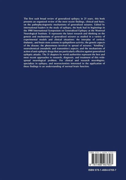 1 Historical Introduction.- I Clinical Background.- 2 The Syndromes of Generalized Epilepsy.- 3 Unanswered Clinical Questions in Generalized Epilepsy.- 4 The Relationship Between Sleep Spindles and Spike-and-Wave Bursts in Human Epilepsy.- II Fundamental Cellular and Neurotransmitter Mechanisms.- 5 Membrane Properties of Cat Betz Cells Studied In Vitro.- 6 Changes in Extracellular Ions Associated with Epileptiform Discharges.- 7 Role of Neurotransmitters in the Genesis of Epileptiform Discharges.- 8 Excitant Amino Acids in Epilepsy.- 9 Possible Epileptogenic Consequences of Misused GABAergic Relationships.- 10 Anticonvulsant Effects of Intracortical Chronic Infusion of GABA in Generalized Epilepsy.- 11 In Vitro Electrophysiology of a Genetic Model of Generalized Epilepsy.- III Thalamic and Cortical Mechanisms in Absence Attacks.- 12 Spindling, Incremental Thalamocortical Responses, and Spike-Wave Epilepsy.- 13 Physiology of Thalamic Relay Neurons: Properties of Calcium Currents Involved in Burst-Firing.- 14 Thalamo-Cortical Relationships in Generalized Epilepsy with Bilaterally Synchronous Spike-and-Wave Discharge.- 15 Focal and Generalized Epileptiform Activity in the Cortex: In Search of Differences in Synaptic Mechanisms, Ionic Movements, and Long-Lasting Changes in Neuronal Excitability.- 16 Pharmacology of the Inhibitory Systems in Primary Generalized Epilepsy of "Petit Mal" Type.- 17 Spontaneous Spike-and-Wave Discharges in Wistar Rats: A Model of Genetic Generalized Conconvulsive Epilepsy.- 18 Behavioral and Electrophysiological Studies of Absence Epilepsy.- IV Photosensitivity.- 19 Focal Discharges in Photosensitive Generalized Epilepsy.- 20 Photosensitive Epilepsy of the Baboon: A Generalized Epilepsy with a Motor Cortical Origin.- 21 Role of Dopamine inGeneralized Photosensitive Epilepsy: Electroencephalographic and Biochemical Aspects.- 22 Inferences Regarding the Visual Precipitation of Seizures, Eye Strain, and Headaches.- V Generalized Convulsive Seizures.- 23 Animal Models of Generalized Convulsive Seizures: Some Neuroanatomical Differentiation of Seizure Types.- 24 Mechanisms Underlying Generalized Tonic-Clonic Seizures in the Rat: Functional Significance of Calcium Ions.- 25 Substantia Nigra-Mediated Control of Generalized Seizures.- 26 Mesencephalic Structures and Tonic-Clonic Generalized Seizures.- VI Metabolic and Neurochemical Studies.- 27 Metabolic Studies of Generalized Epilepsy.- 28 PET Studies of Generalized Epilepsy Induced by Convulsant Drugs Acting at the GABA-Benzodiazepine Receptor Complex.- 29 Postictal Compensatory Changes in Cortical Alpha-1 Receptors and Adrenergic-Mediated Phosphoinositol Metabolism Following Repeated Electroconvulsive Seizures in Rats.- VII Pharmacological Agents and Generalized Seizures.- 30 Cellular Actions of Petit Mal Anticonvulsants: Implication of Thalamic Low-Threshold Calcium Current in Generation of Spike-Wave Discharge.- 31 Mechanisms of Anticonvulsant Action of Valproate: An Overview and Perspective.- 32 Sedative Drug Withdrawal Seizures: Cellular Electrophysiological Mechanisms.
