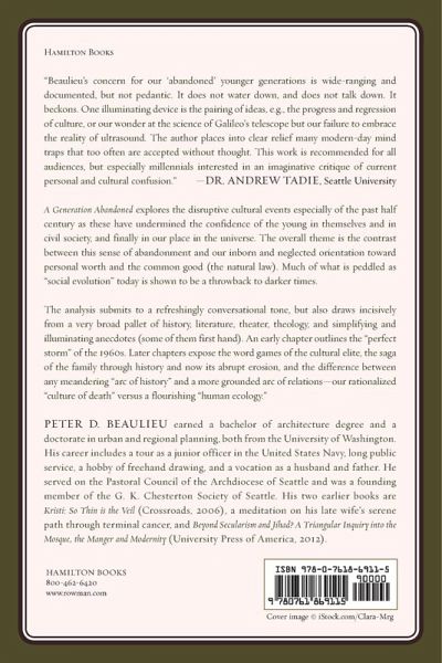 A Generation Abandoned explores the disruptive cultural events especially of the past half century as these have undermined the confidence of the young in themselves and in civil society, and finally in our place in the universe.