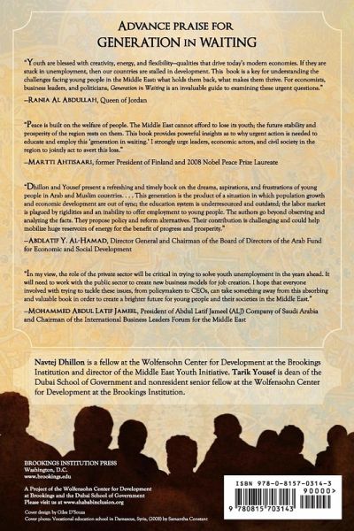 " Young people in the Middle East (15-29 years old) constitute about one-third of the region's population. Growth rates for this age group trail only sub-Saharan Africa. This presents the region with an historic opportunity to build a lasting foundation for prosperity by harnessing the full potential of its young population. Yet young people in the Middle East face severe economic and social exclusion due to substandard education, high unemployment, and poverty. Thus the inclusion of youth is the most critical development challenge facing the Middle East today. A Generation in Waiting portrays the plight of young people, urging greater investment designed to improve the lives of this critical group. It brings together perspectives from the Maghreb to the Levant. Each chapter addresses the complex challenges facing young people in many areas of their lives: access to decent education, opportunities for quality employment, availability of housing and credit, and transitioning to marriage and family formation. This volume presents policy implications and sets an agenda for economic development, creating a more hopeful future for this and future generations in the Middle East. Selected contributors include Ragui Assaad (University of Minnesota), Brahim Boudarbat (University of Montreal), Jad Chaaban (American University in Beirut), Nader Kabbani (Syria Trust for Development), Taher Kanaan (Jordan Center for Public Policy Research and Dialogue), Djavad Salehi-Isfahani (Wolfensohn Center for Development and Virginia Tech), and Edward Sayre (University of Southern Mississippi)."