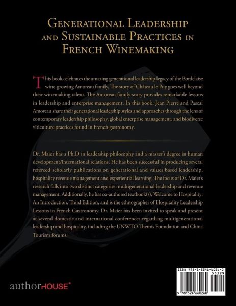 This book celebrates the amazing generational leadership legacy of the Bordelaise wine-growing Amoreau family. The story of Château le Puy goes well beyond their winemaking talent. The Amoreau family story provides remarkable lessons in leadership and enterprise management. In this book, Jean Pierre and Pascal Amoreau share their generational leadership styles and approaches through the lens of contemporary leadership philosophy, global enterprise management, and biodiverse viticulture practices found in French gastronomy.