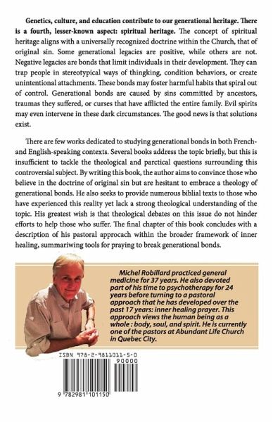 Genetics, culture, and education contribute to our generational heritage. There is a fourth, lesser-known aspect: spiritual heritage. The concept of spiritual heritage aligns with a universally recognized doctrine within the Church-that of original sin. Some generational legacies are positive, while others are not. Negative legacies are bonds that limit individuals in their development. They can trap people in stereotypical ways of thinking, condition behaviors, or create unintentional attachments. These bonds may foster harmful habits that spiral out of control. Generational bonds are caused by sins committed by ancestors, traumas they suffered, or curses that have afflicted the entire family. Evil spirits may even intervene in these dark circumstances. The good news is that solutions exist. There are few works dedicated to studying generational bonds in both French and English-speaking contexts. Several books address the topic briefly, but this is insufficient to tackle the theological and practical questions surrounding this controversial subject. By writing this book, the author aims to convince those who believe in the doctrine of original sin but are hesitant to embrace a theology of generational bonds. He also seeks to provide numerous biblical texts to those who have experienced this reality yet lack a strong theological understanding of the topic. His greatest wish is that theological debates on this issue do not hinder efforts to help those who suffer. The final chapter of this book concludes with a description of his pastoral approach within the broader framework of inner healing, summarizing tools for praying to break generational bonds.