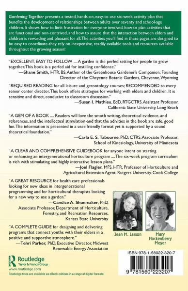 Foreword (Carla E. S. Tabourne) Chapter 1. Introduction Objective of Sourcebook and Benefits of Intergenerational Gardening Benefits for the Elderly Benefits for the Children How to Use This Sourcebook Chapter 2. Strategies for Working with Elders and Children Developing Program Content Promoting Interaction Chapter 3. Designing Accessible Gardens Accessible Design Standards Accessible Containers Constructing a Raised Bed Planter Suggestions for a Sensory Garden: Choosing Plants That Stimulate All Five Senses Basic Sensory Garden Design Chapter 4. Six-Week Intergenerational Sensory Garden Activity Plans Awakening the Senses in the Garden: Overall Program Overview Preprogram Orientation for Elders Preprogram Orientation for Children Week #1: Getting to Know You Week #2: The Brain and the Senses Week #3: Sound and the Ear Week #4: Sight and the Eye Week #5: The Sense of Touch Week #6: The Senses of Taste and Smell Postprogram Party Certificate of Completion Example Chapter 5. Evaluation Strategies Rationale to Evaluation Evaluation Example Postevaluation Resources Basic Horticulture Botanic Gardens and Arboreta Honeybees Horticultural Therapy Intergenerational Programs Sensory Gardens Therapeutic Garden Program Curriculum Tools Universal Design Index Reference Notes Included