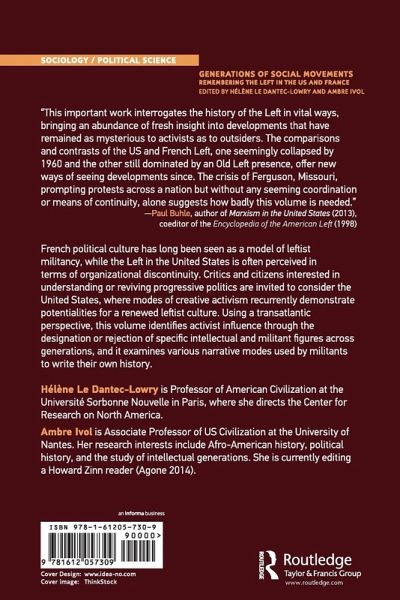 French political culture has long been seen as a model of leftist militancy, while the left in the United States is often perceived in terms of organizational discontinuity. Yet today's crisis of social democracy suggests that while the archetypal European welfare state is in danger, critics and citizens interested in understanding or reviving progressive politics are invited to consider the US, where modes of creative activism demonstrate potentialities for a renewed leftist culture. This volume uses a transatlantic perspective to identify activist influence through the designation or rejection of specific intellectual and militant figures across generations.