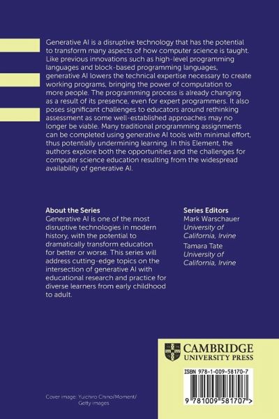 In this Element, the authors explore both the opportunities and the challenges for computer science education resulting from the widespread availability of generative AI.