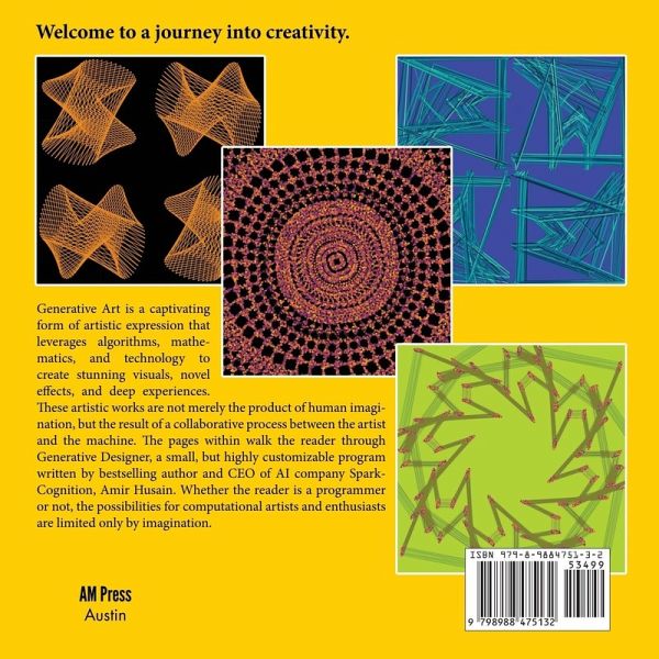 Welcome to a journey into creativity. Generative Art is a captivating form of artistic expression that leverages algorithms, mathematics, and technology to create stunning visuals, novel effects, and deep experiences. These artistic works are not merely the product of human imagination, but the result of a collaborative process between the artist and the machine. The pages within walk the reader through Generative Designer, a small, but highly customizable program written by bestselling author and CEO of AI company SparkCognition, Amir Husain. Whether the reader is a programmer or not, the possibilities for computational artists and enthusiasts are limited only by imagination.