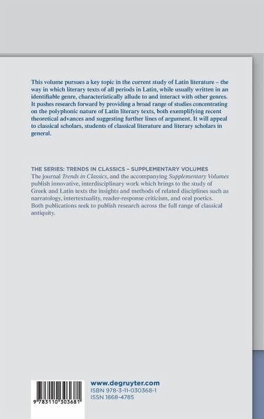 Neither older empiricist positions that genre is an abstract concept, useless for the study of individual works of literature, nor the recent (post) modern reluctance to subject literary production to any kind of classification seem to have stilled the discussion on the various aspects of genre in classical literature. Having moved from more or less essentialist and/or prescriptive positions towards a more dynamic conception of the generic model, research on genre is currently considering "pushing beyond the boundaries", "impurity", "instability", "enrichment" and "genre-bending". The aim of this volume is to raise questions of such generic mobility in Latin literature. The papers explore ways in which works assigned to a particular generic area play host to formal and substantive elements associated with different or even opposing genres; assess literary works which seem to challenge perceived generic norms; highlight, along the literary-historical, the ideological and political backgrounds to "dislocations" of the generic map.