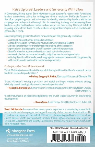 With all of the books written on stewardship and all of the workshops offered; why do churches continue to struggle with questions and issues of financial giving? The answer is in the church's leadership. A revolution of generosity will only occur as pastors, financial chairs and stewardship chairs live and give witness to the importance of generosity in their personal lives and then intentionally recruit and train others to join the revolution. Leading a revolution in generosity is not about simply using the right program or reading the right book or preaching the right sermon; a revolution of generosity is about embracing, living and leading others on a journey of gratitude, prayer and faith. Generosity Rising instructs pastors on whom to recruit and how to recruit them, offering practical guidelines for training a dedicated team of "generosity revolutionaries." This book also provides daily devotionals for leaders to inspire, motivate and encourage their personal journey of gratitude, prayer and faith.