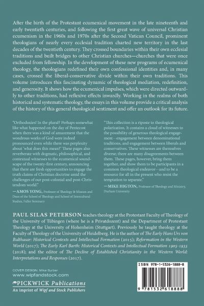 After the birth of the Protestant ecumenical movement in the late nineteenth and early twentieth centuries, and following the first great wave of universal Christian ecumenism in the 1960s and 1970s after the Second Vatican Council, prominent theologians of nearly every ecclesial tradition charted new territory in the last decades of the twentieth century. They crossed boundaries within their own ecclesial traditions and built bridges to other Christian churches--churches that were once excluded from fellowship. In the development of these new programs of ecumenical theology, the theologians redefined their own confessional identities and, in many cases, crossed the liberal-conservative divide within their own traditions. This volume introduces this fascinating dynamic of theological mediation, redefinition, and generosity. It shows how the ecumenical impulses, which were directed outwardly to other traditions, had reflexive effects inwardly. Working in the realms of both historical and systematic theology, the essays in this volume provide a critical analysis of the history of this general theological sentiment and offer an outlook for its future. Contributors Brian D. McLaren, Foreword Paul Silas Peterson, Introduction Part One: Ecumenical reform theologies Andrew Meszaros, Yves Congar: The Birth of ""Catholic Ecumenism"" Matthew L. Becker, Edmund Schlink: Ecumenical Theology Dorothea Sattler, Otto Hermann Pesch: Ecumenical Scholasticism Ronald T. Michener, George Lindbeck: Ecumenical Unity through Ecclesial Particularity Nikolaos Asproulis, John D. Zizioulas: A Pioneer of Ecumenical Dialogue and Christian Unity Part Two: Overcoming liberal-conservative polarities Ben Fulford, Hans Frei: Beyond Liberal and Conservative Friederike Nussel, Wolfhart Pannenberg: Liberal Orthodoxy Jay T. Smith, Stanley J. Grenz: The Evangelical Turn to Postliberal Theological Method Part Three: Boundary crossings in philosophical, systematic and ethical theology William E. Myatt, David Tracy: Difference, Unity, and the Analogical Imagination Christophe Chalamet, Robert Jenson: God's Way and the Ways of the Church Victoria Lorrimar, Stanley Hauerwas: Witnessing Communities of Character Christine M. Helmer, Marilyn McCord Adams: Philosophy, Theology, and Prayer Part Four: Ecumenical theology today Wolfgang Vonday, Pentecostalism and Christian Orthodoxy: Revision, Revival, and Renewal Johanna Rahner, Shifting Paradigms - Future Ecumenical Challenges Michael Amaladoss, Theology today in India: Ecumenical or interreligious? Bernd Oberdorfer, Next Steps - and Visions? Lutheran Perspectives on Doctrinal Ecumenism