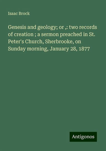 Genesis and geology; or ,: two records of creation ; a sermon preached in St. Peter's Church, Sherbrooke, on Sunday morning, January 28, 1877 - Brock, Isaac