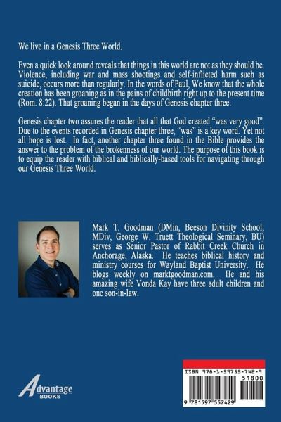 We live in a Genesis Three World. Even a quick look around reveals that things in this world are not as they should be. Violence, including war and mass shootings and self-inflicted harm such as suicide, occurs more than regularly. In the words of Paul, We know that the whole creation has been groaning as in the pains of childbirth right up to the present time (Rom. 8:22). That groaning began in the days of Genesis chapter three. Genesis chapter two assures the reader that all that God created "was very good". Due to the events recorded in Genesis chapter three, "was" is a key word. Yet not all hope is lost. In fact, another chapter three found in the Bible provides the answer to the problem of the brokenness of our world. The purpose of this book is to equip the reader with biblical and biblically-based tools for navigating through our Genesis Three World.
